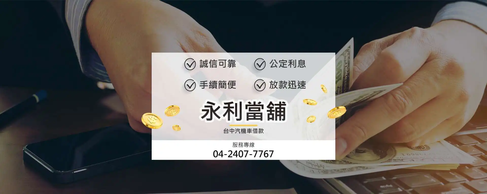 公司:台中永利當舖 · 電話:(04)2407-7767 · 地址:台中市大里區國光路二段 773 號 · 加入 LINE 諮詢